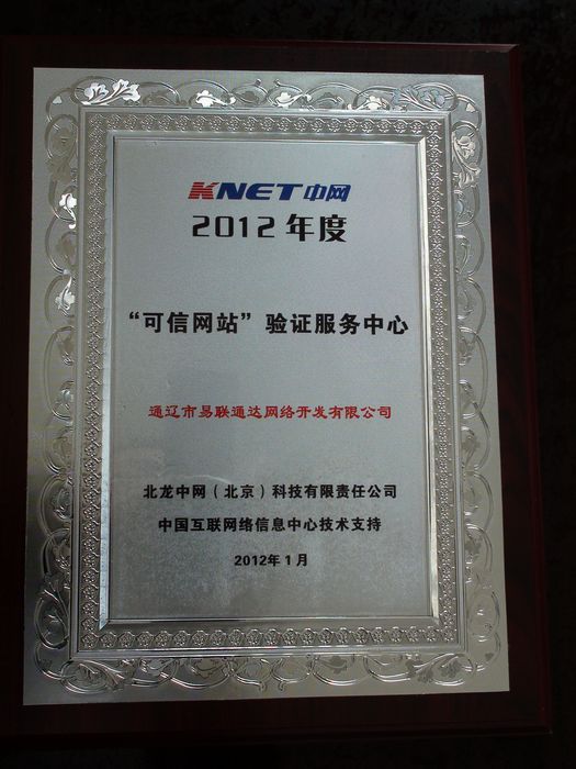 2012年通過中網(wǎng)可信網(wǎng)站認證,正式成為通遼地區(qū)唯一一個 可以為通遼地區(qū)企業(yè)的網(wǎng)站提供可信網(wǎng)站驗證服務(wù)的機構(gòu)。